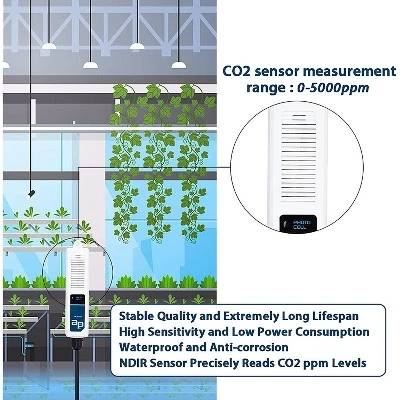 - REMOTE SENSOR PROBE: Remote CO2 sensor probe with photocell and 15-foot data cable takes readings from grow room locations