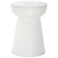 Sunnydaze Decor Sunnydaze Moderno Geometric Ceramic Decorative Garden Stool – 17.25″ – White