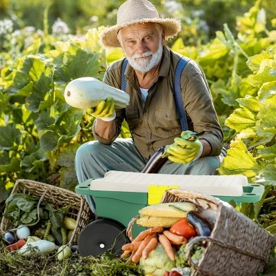 Do yardwork or harvesting tasks efficiently with this Nature Spring Garden Storage Wagon Cart. Its built-in seat lets you work on the ground comfortably, while the versatile and spacious container can carry gardening tools or fresh-picked veggies. This senior-friendly rolling caddy features side handles with tool holes to keep your most-used items within easy reach.