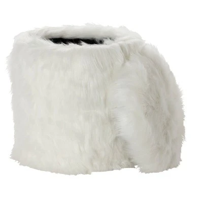 - This contemporary round storage stool sports a minimalist white-colored faux fur and black-colored interior