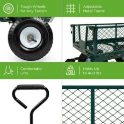 Best Choice Products Dual-Wheel Home Wheelbarrow Yard Garden Cart for Lawn, Construction – Green