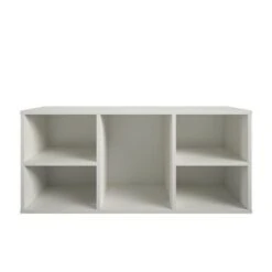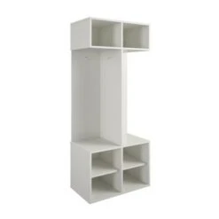 Get all the storage you need to keep your child’s playroom or bedroom organized with the RealRooms Jocelyn Kid’s 4 Cube Storage. The finish on the laminated particleboard can easily be added to your little girl or boy’s room. The 4 lower cubbies are perfect for shoes, electronics, and toys. Add fabric bins to the lower cubbies to create fun concealed storage (fabric bins not included). Hang coats, hats, and book bags on the metal 8 metal hooks and create a fun and tidy learn from home space. The Kid’s Storage unit meets the CPSIA Juvenile testing requirements so you can keep your child’s playroom neat and tidy. The 4 Cube Storage unit can be paired with the rest of the Jocelyn storage items to create the perfect storage solution for your home. The Kid’s Storage unit ships flat to your door and requires assembly upon opening. Two adults are recommended to assemble. Once assembled, the Storage unit measures to be 56.6”H x 23.6”W x 14”D.