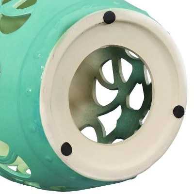 Add an elegant touch to the garden, living room, patio or sunroom with this stylish ceramic drum garden stool. This decorative ceramic stool features a vibrant glazed finish and a sophisticated knotted quatrefoil design that will complement any decor style. This versatile piece of garden decor can be used as end table, a convenient footrest, or accent piece.
