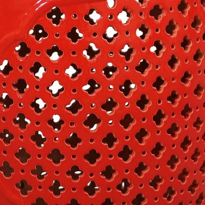 Add an elegant accent piece to the garden, sunroom, living room or patio with this stylish ceramic drum garden stool. This lovely garden stool decor piece is highly versatile and can be used as end table, a footrest or as a decorative accent in a variety of indoor or outdoor locations. Beautifully crafted from ceramic, this decorative garden stool features a vibrant glazed finish and an intricate lattice design.