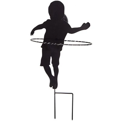 Add a playful touch to your yard with this garden décor. These lawn ornaments are available as boy or girl silhouettes. Around the waist of each child silhouette, there’s a solar lighted hoop with 17 LED lights. This outdoor décor lets you select between two light functions: flashing and constant on. Since this yard décor is solar lighted with no need for batteries or wiring, installation is easy. Just push it into the ground and let the sun do the work. 8-1/4″W x 4″D x 16″H, including the approx. 6-3/8″L ground stake. Metal.